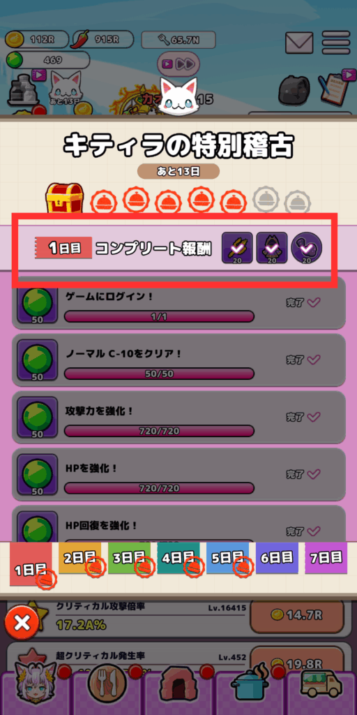 序盤を進めて行くのに欠かせないのが初心者ミッションである「キティラの特別稽古」1日目のコンプリート報酬です。