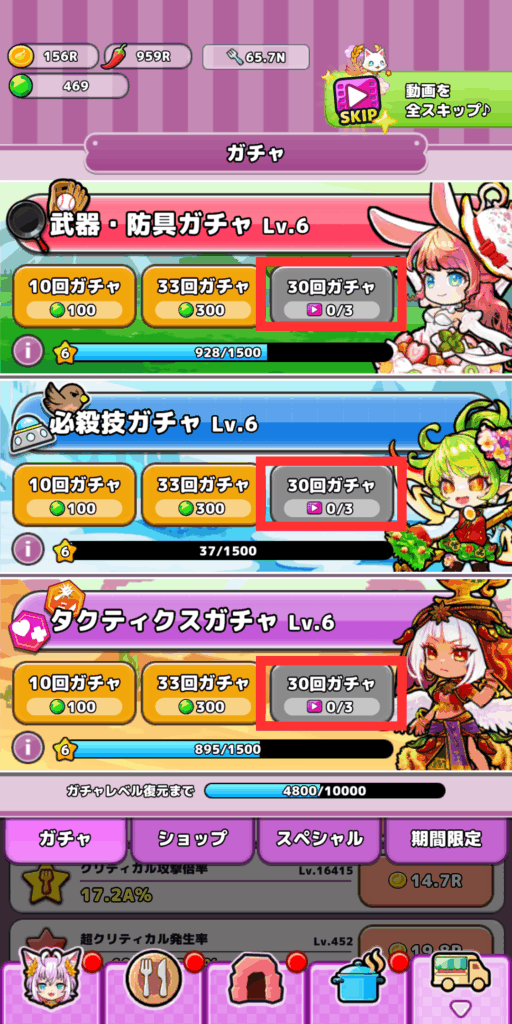 装備ガチャ・必殺ガチャのどちらかに序盤から寄せてしまうとメインミッションが達成できず詰まる可能性があるのでそこだけ注意しましょう。