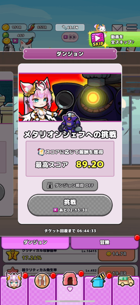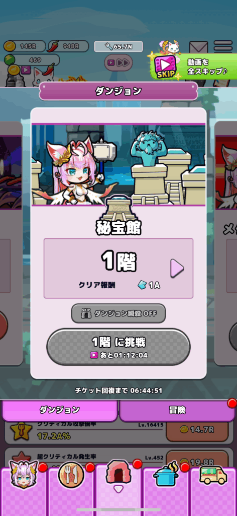 毎日チケット2枚+4時間おきに挑戦可能なのでこちらも秘宝館と同様に毎日可能な限りチャレンジすると効率よく進められると思います。