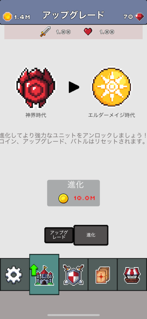 なお、アップグレードで解放したユニットや食糧生産の強化などは、進化を行うとリセットされてしまいます。
