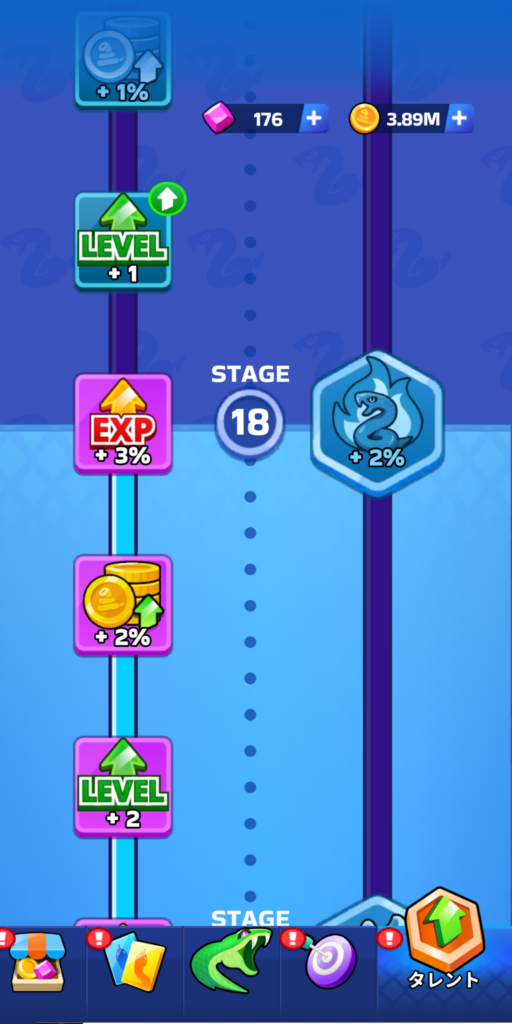 また「タレント」に関しては、私は STAGE18 まで強化していましたが、ステータスの方をしっかり上げていれば、そこまで育てていなくても特に支障は感じませんでした。