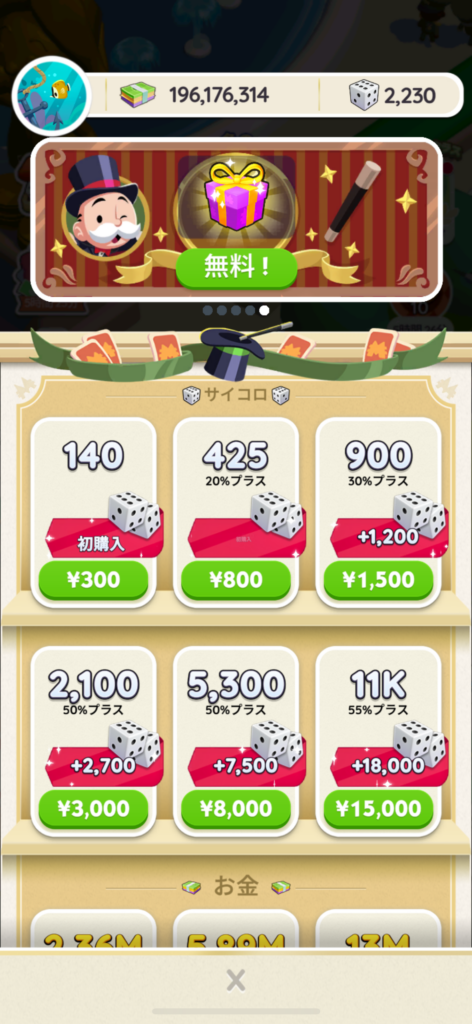課金はしないでOK、サイコロは無料で貯めれます