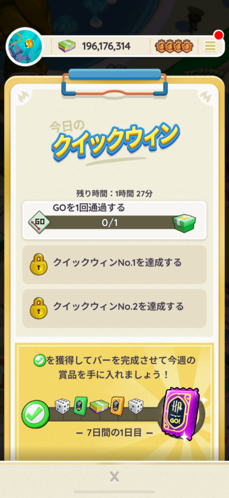 - クイックウィン(デイリーミッション)の達成