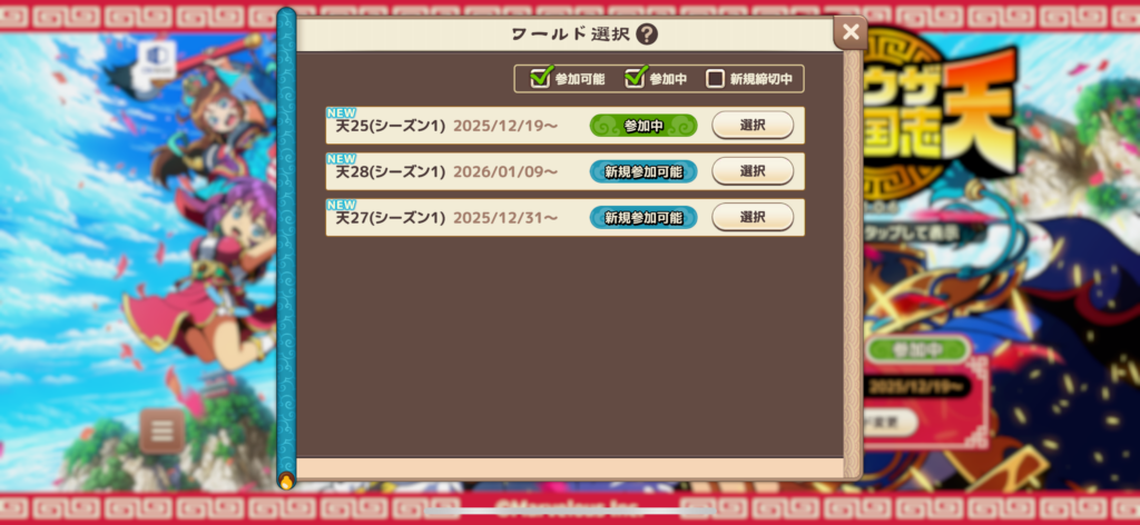 アプリをインストールして最初に選ぶ開始サーバは、一番新しいサーバを選択するのがおすすめです。