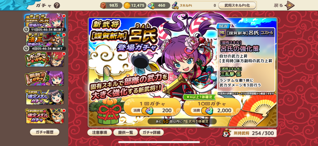 最低限のステータスがあれば、クエストや土地取得は十分進められるため、武将ガチャは必要最低限に留めておくのがおすすめです。