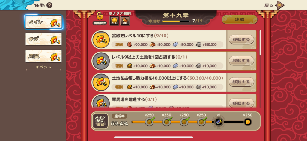 武将レベルの条件については、基本的に「戦記」を進めていくだけで、ほぼ最後の条件まで到達可能でした。