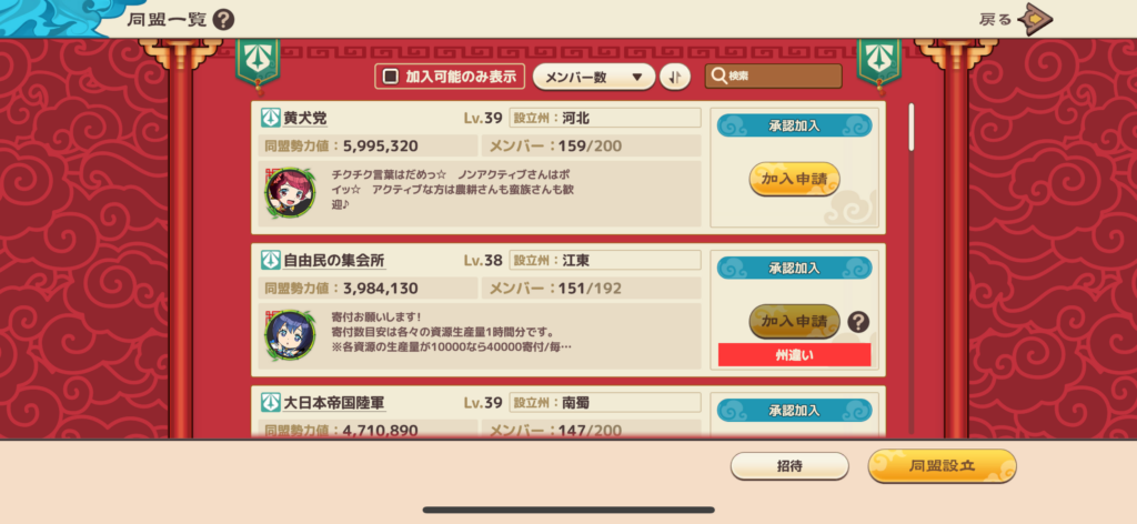 加入によるメリットが非常に大きいため、必ずどこかの同盟に参加しましょう。
